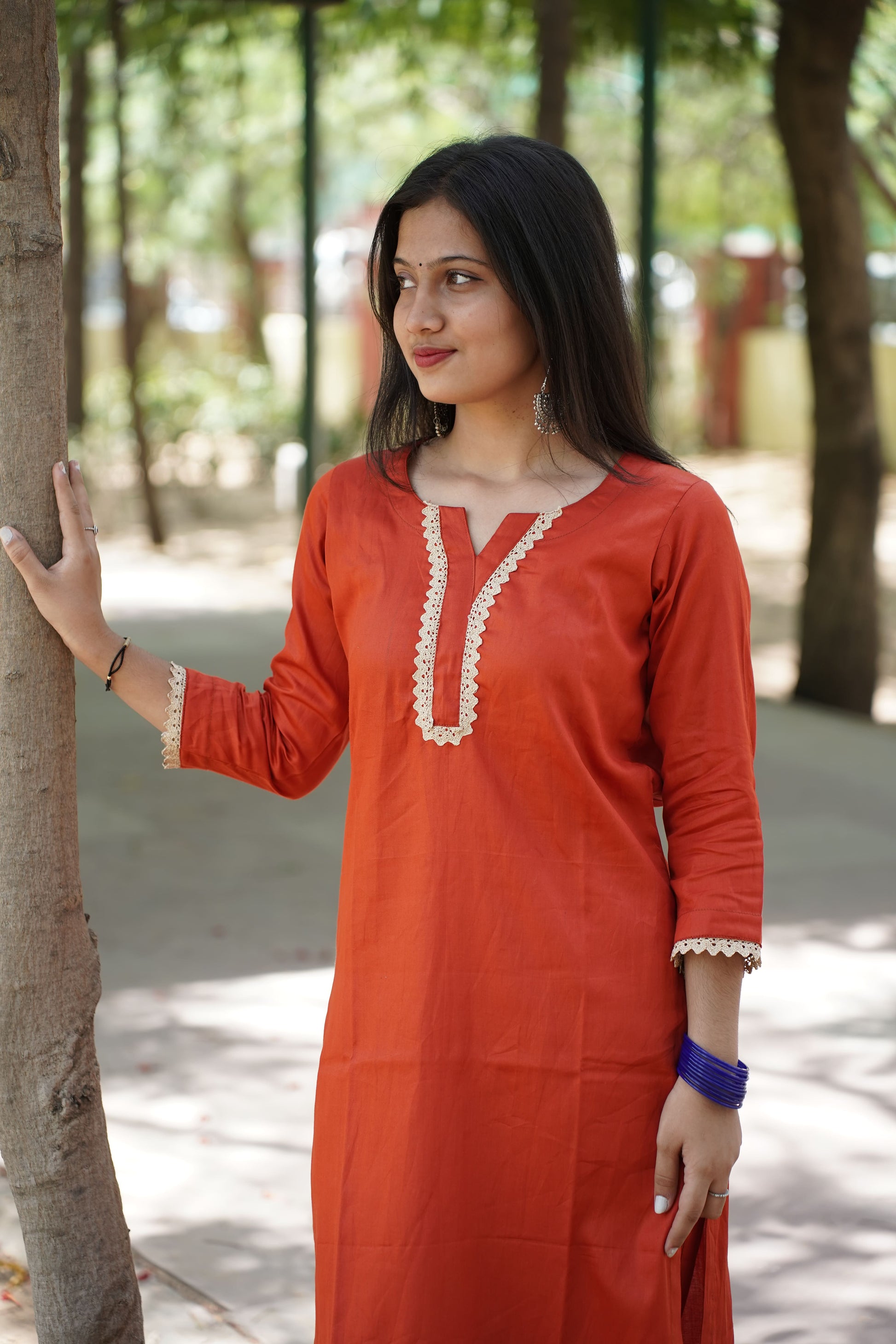 Elevate your ethnic wardrobe with this elegant Rust Orange Glace Cotton Straight Kurti with Pant & Kota Doriya Dupatta, beautifully paired with a printed pant and a lightweight Kota Doriya dupatta. Crafted from breathable and soft rayon fabric, this ensemble is perfect for festive gatherings, family functions, or casual cultural events.